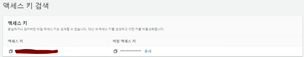 비밀 액세스 키를 표시한다음에 잘 저장해 두어야 한다.