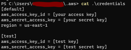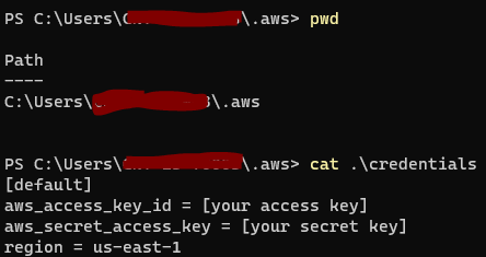 그리고 User > [pc 이름] > .aws 폴더 아래에 credential이라는 파일을 생성한다.