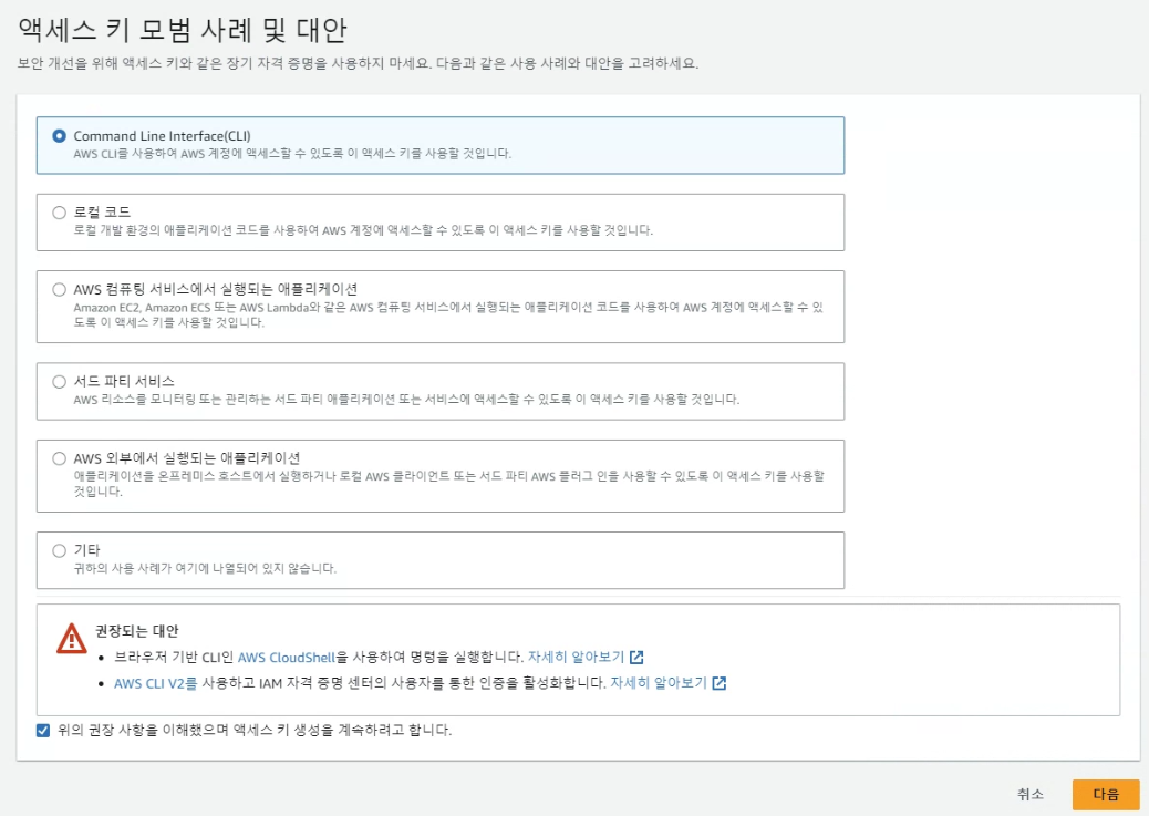 CLI를 사용할 것이기 CLI 선택후 다음 버튼 클릭