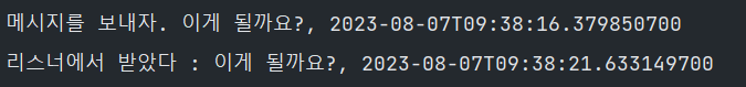System.out.printf("리스너에서 받았다 : %s, %s%n", payload, LocalDateTime.now());