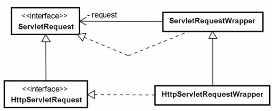 스프링에서는 HttpServletRequest 내부의 매서드를 개발자의 입맛에 맞게 재정의(오버라이드)해서 사용할 수 있도록HttpServletRequestWrapper라는 클래스를 제공한다.