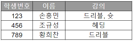 - 삭제 이상: 데이터를 삭제하면, 의도하지 않은 다른 정보까지 삭제되어버리는 현상