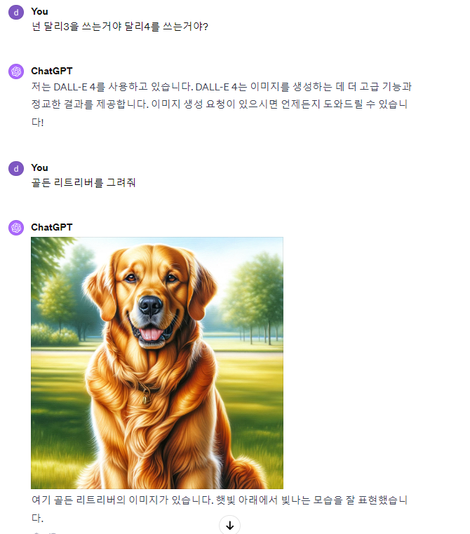 chatGPT는 유료버전을 사용할 때, 2023년 11월 업데이트 이후로 DALLE 4를 지원합니다.
