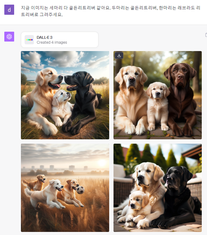 아래부터는 DALLE 3를 썼을 때입니다. 2023년 11월 이전에 질문한 결과 이지만 질문 방식은 지금과 동일합니다.