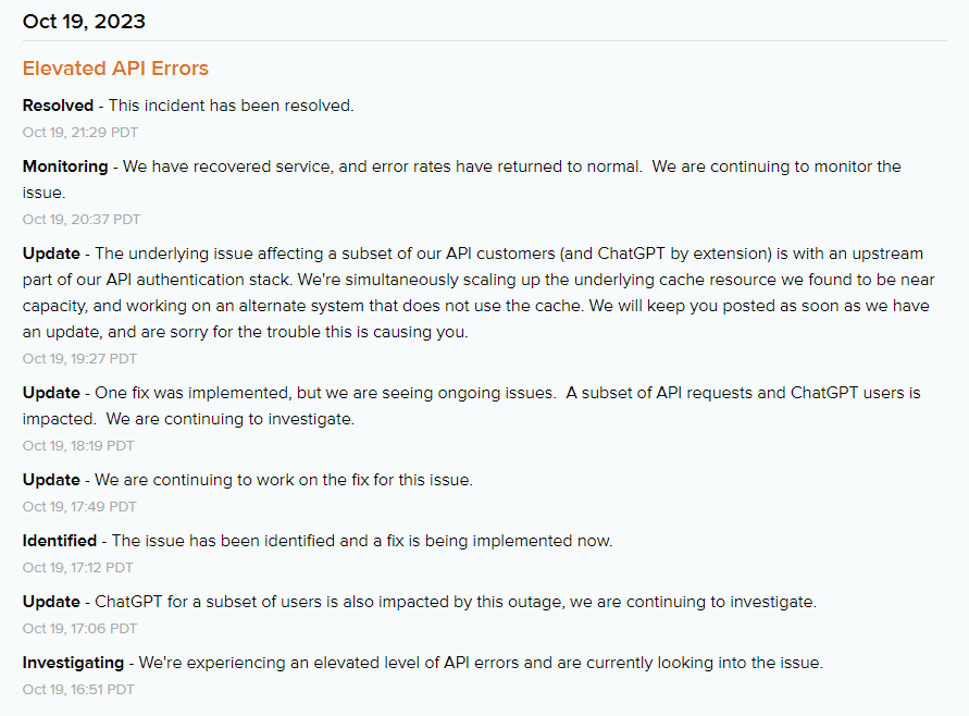 간단히 번역해보면 API 인증스택의 업스트림 파트에 문제가 있었다고 한다.