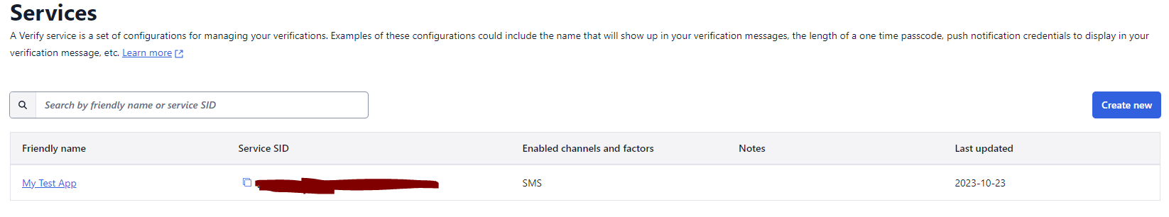 그러면 앱이 생성되고 Service SID가 나온다. 이것도 잘 복사해두자.
