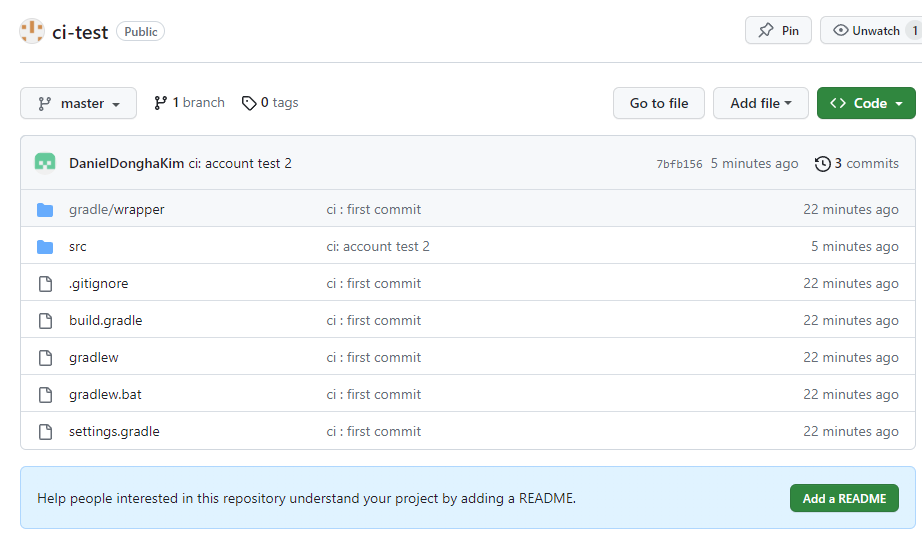 이러면 일단 ci는 끝이다.