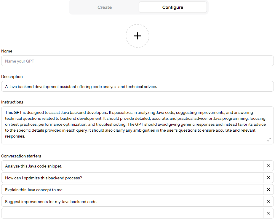 GPT Builder라는 기능인데, 프롬프트를 미리 작성해 원하는 형식의 답변을 받거나