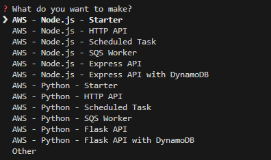 커맨드라인에 serverless를 입력하면 아래와 같은 메시지가 나온다.