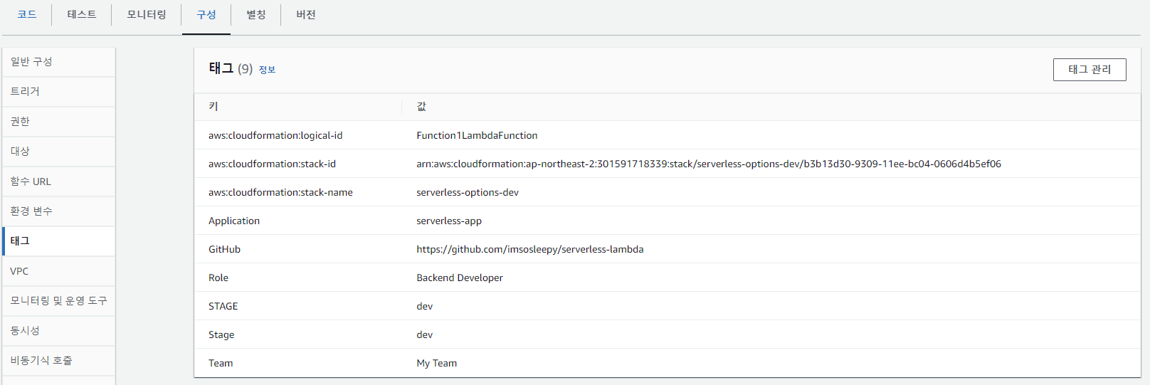 초기 작성할 때는 태그를 넣지않고 만들어서인지, 중복된 정보나 디폴트로 들어가는 태그들이 지정된 것 같다. 이 태그도 serverless에서 남길 수 있다.