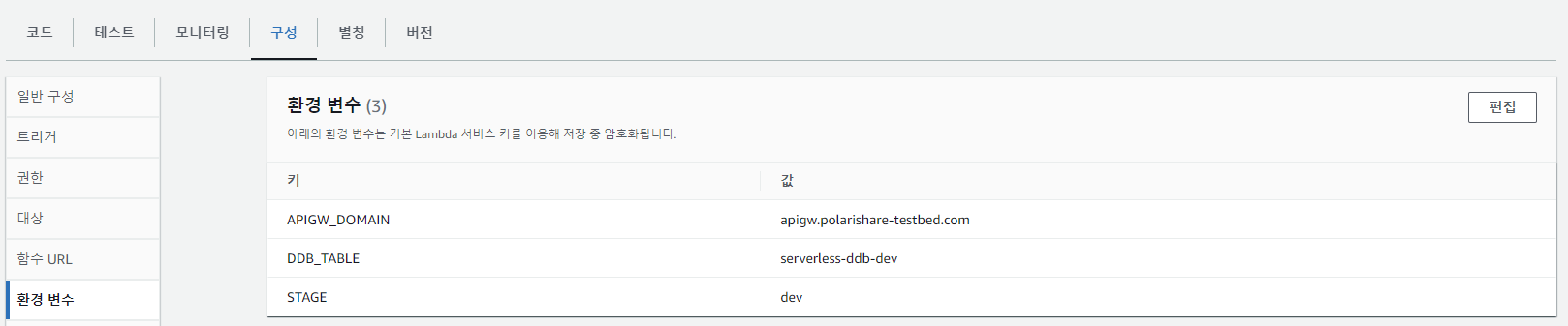 람다의 세부정보를 보다보면 환경변수가 존재한다.