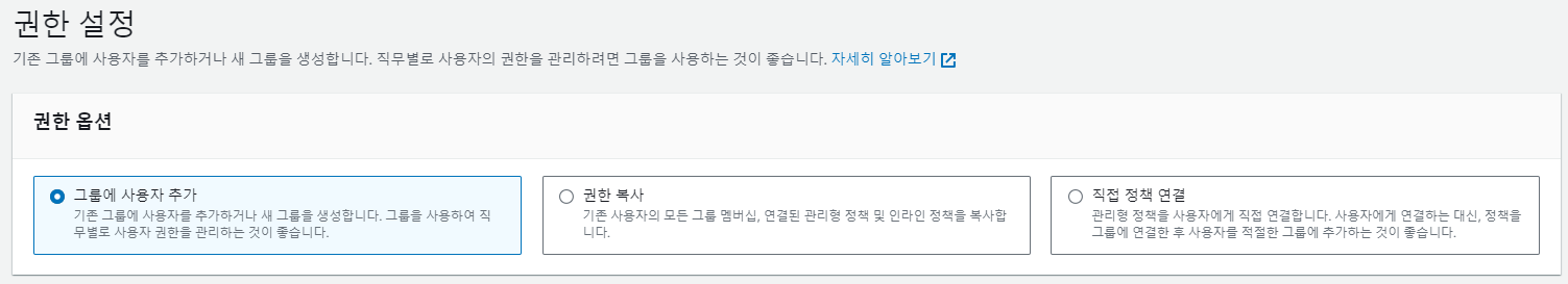 사용자를 만들 때, 정책 지정을 할 수 있는데 이 부분만 잘 기억해두자.