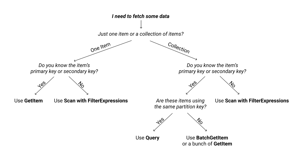 대략적으로 DDB에는 조회에 3가지 방식이 있는 것 같은데, 어떤 것을 사용하는 게 좋을지 조금 짚고 넘어가보자.