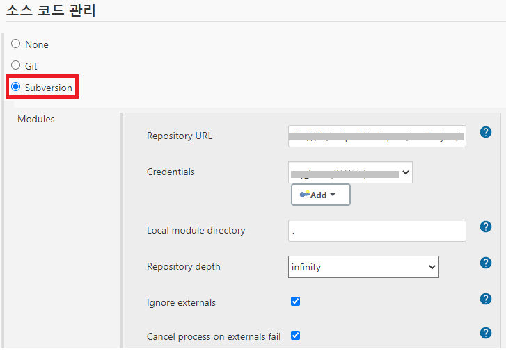 우리 회사 코드는 Torstoise SVN으로 관리한다. 하지만 Jenkins를 처음 설치하고새로운 Item > Freestyle project > 소스 코드 관리를 보면, Subversion이 없다.