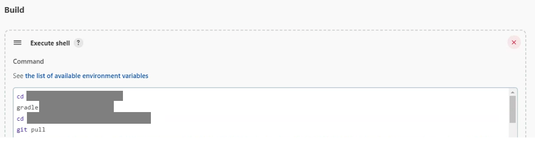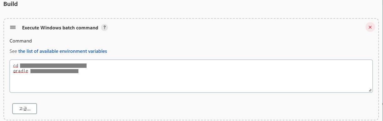 gradle 빌드를 하기 때문에 build.gradle이 있는 경로로 이동해서 빌드하게끔 위와같이 명령어를 작성했다.
