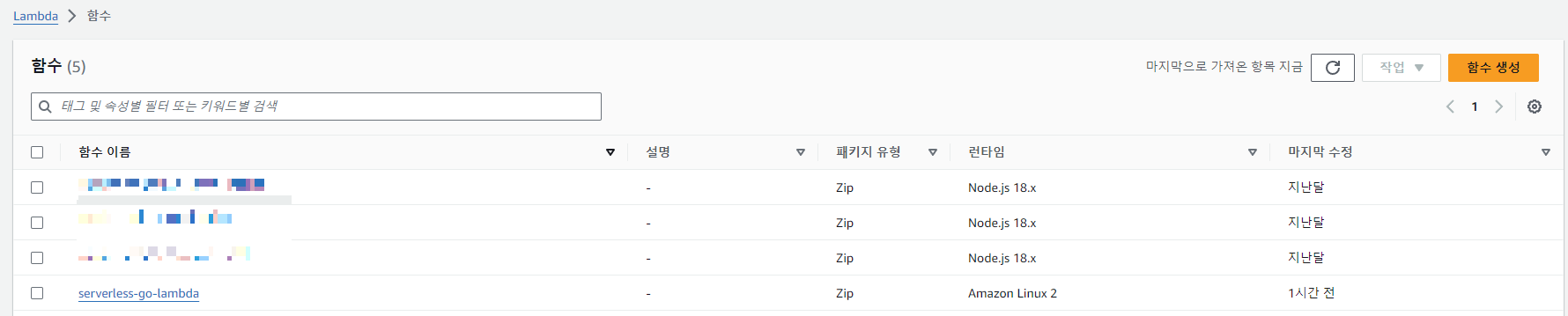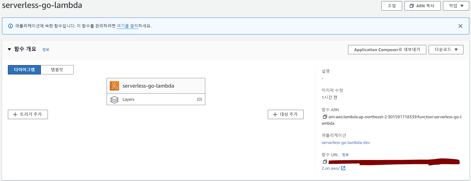 추가적으로, Go의 함수 크기가 nodejs보다 커서 함수를 Lambda 콘솔 내에서 관리할 수 없다.