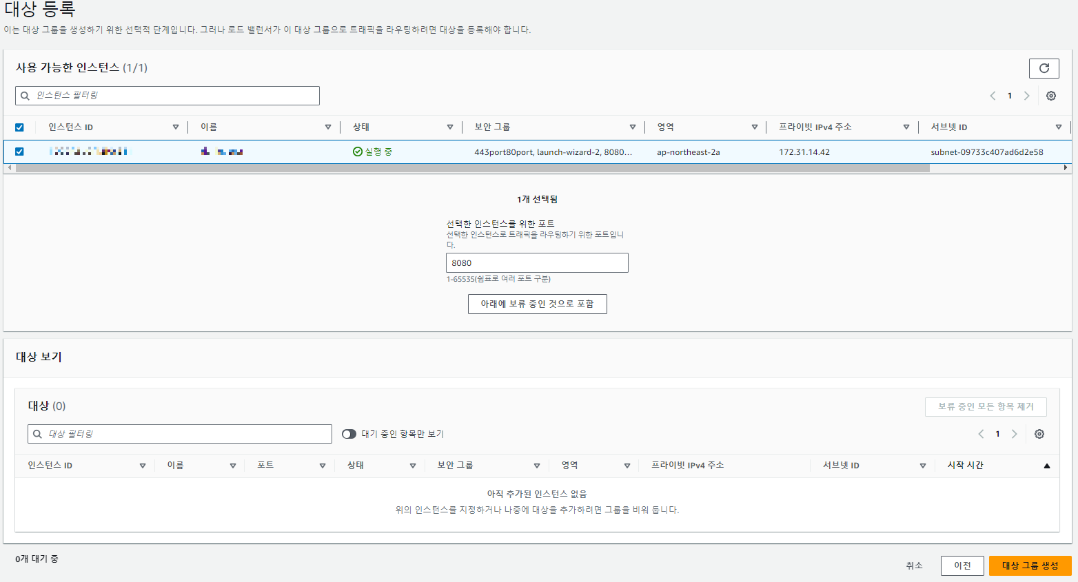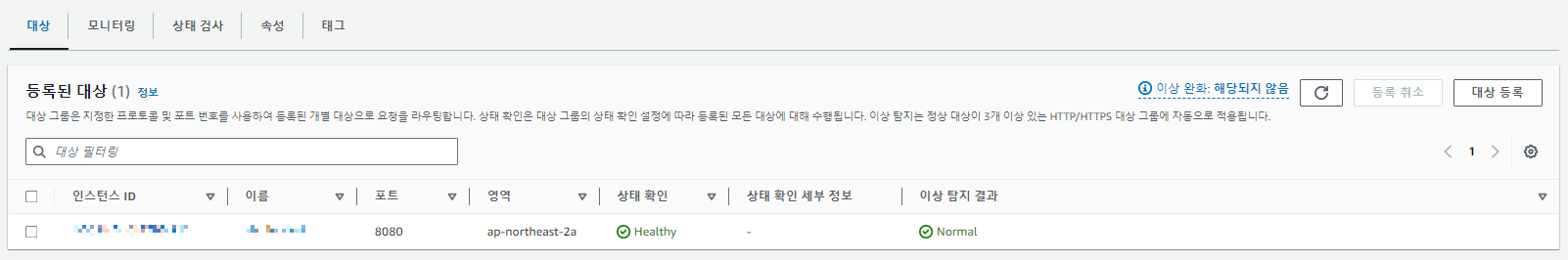 로드 밸런서니까 당연히 서브넷 별로 EC2를 지정해 트래픽을 분산해야하지만 이번 예시에는 하나의 EC2만 사용했다.
