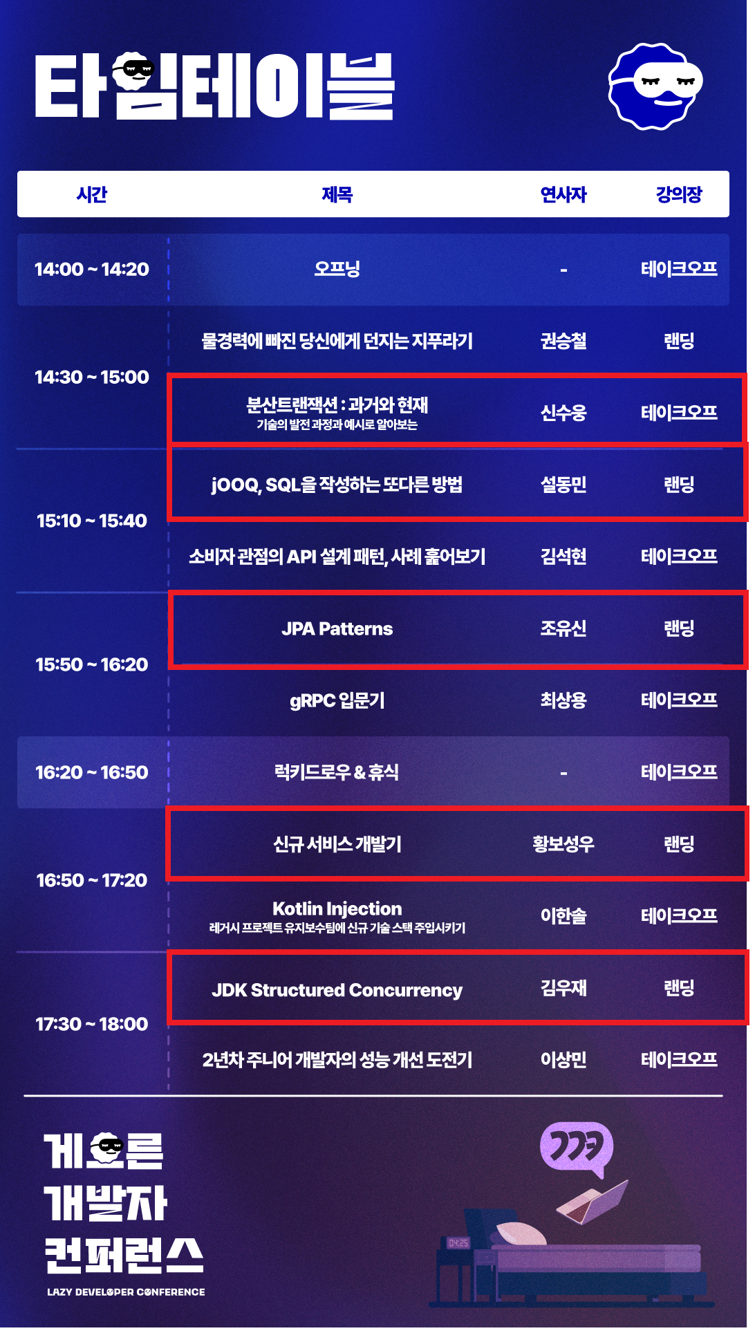 첫번째 세션은 분산 트랜잭션에 대한 세션을 들었는데, 아직은 내가 할 수 없는 범위의 내용들이었다.