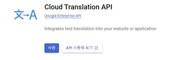 Cloud Translation API를 선택하고, 사용으로 활성화하면 된다.