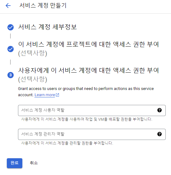 서비스 계정을 만들고, Key를 발급받아야하는데 이 과정에서 "역할"을 부여해야 사용 가능하다.