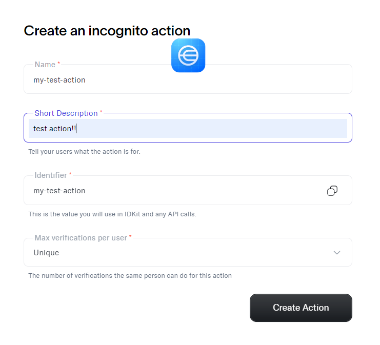2. incognito action을 생성한다. Unique로 해야 한 사용자 당 한번 인증을 사용하게끔 할 수 있다.