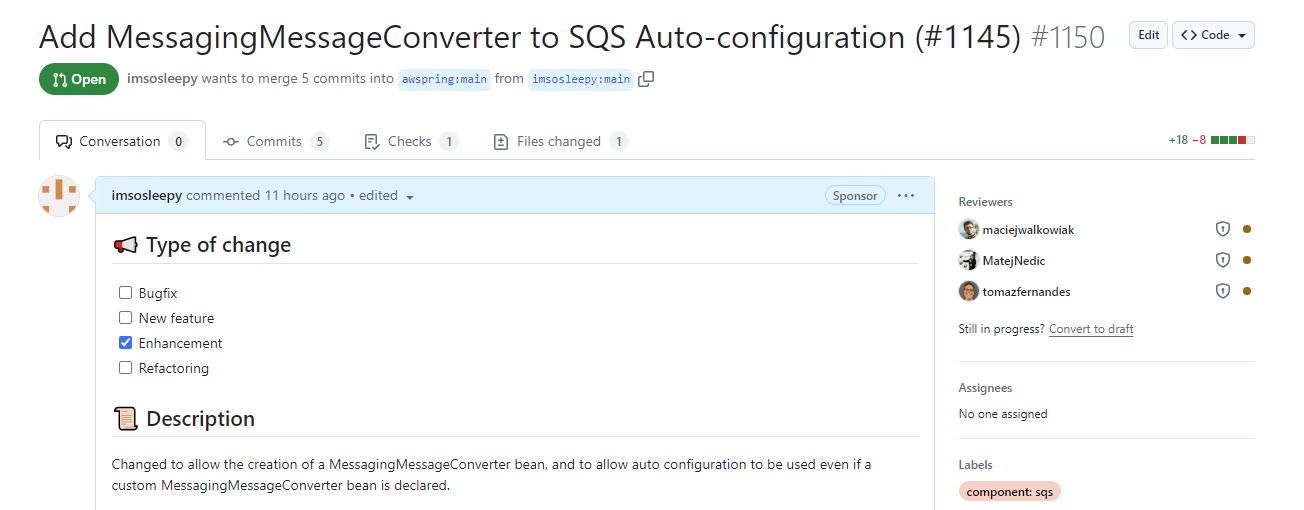 최종 PR : https://github.com/awspring/spring-cloud-aws/pull/1150