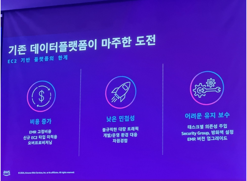 다양한 데이터 종류에 따른 EC2 개수의 증가, EMR 버전에 따라 증가되는 클러스터 개수 등 비용 문제가 발생함