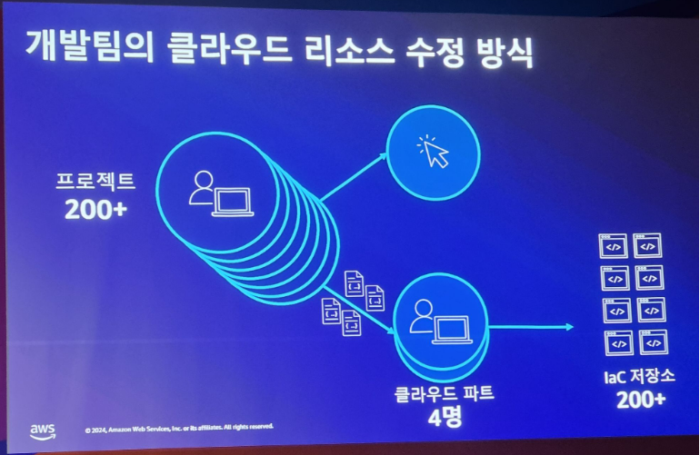그러다보니 개발팀이 늘어감에 따라서 클라우드 담당자들에게 부하가 발생(다른 회사들과 동일한 이슈 발생)