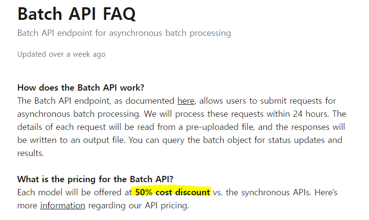 GPT4o 모델을 제공한다는 것과 Batch API를 통해 훨씬 저렴하게 API를 사용할 수 있게 됐다.