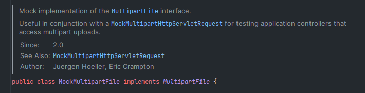 그냥 뚝딱뚝딱 쓸 수 있는 구현체가 있으면 좋은데, 스프링에서 기본적으로 제공하는 MultipartFile의 구현체가 없다.
