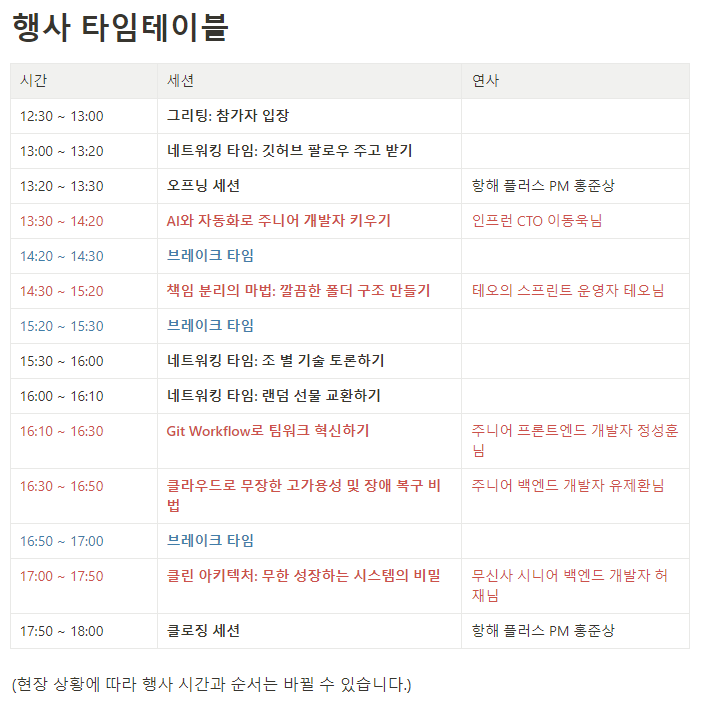 세션보단 네트워킹에 초점을 맞춘 스케줄이었다.