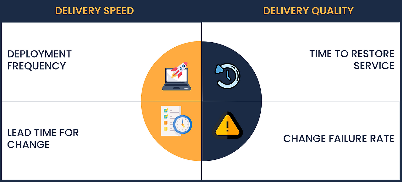 - DORA 매트릭을 통해서 개발팀의 생산성을 측정하는 주요 지표