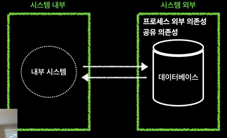 프로세스 외부 의존성 : 어플리케이션 외부에서 실행되는 의존성, 데이터에 대한 프록시