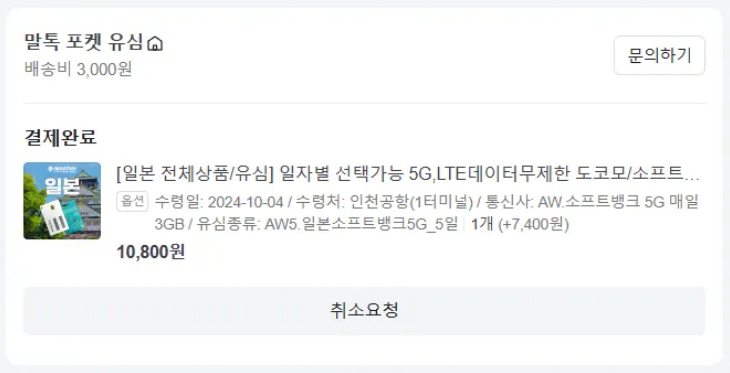 그래서 출국 전날 후다닥 유심을 신청했다. 다행히 전날에도 예약을 받아줘서 다행이었다.