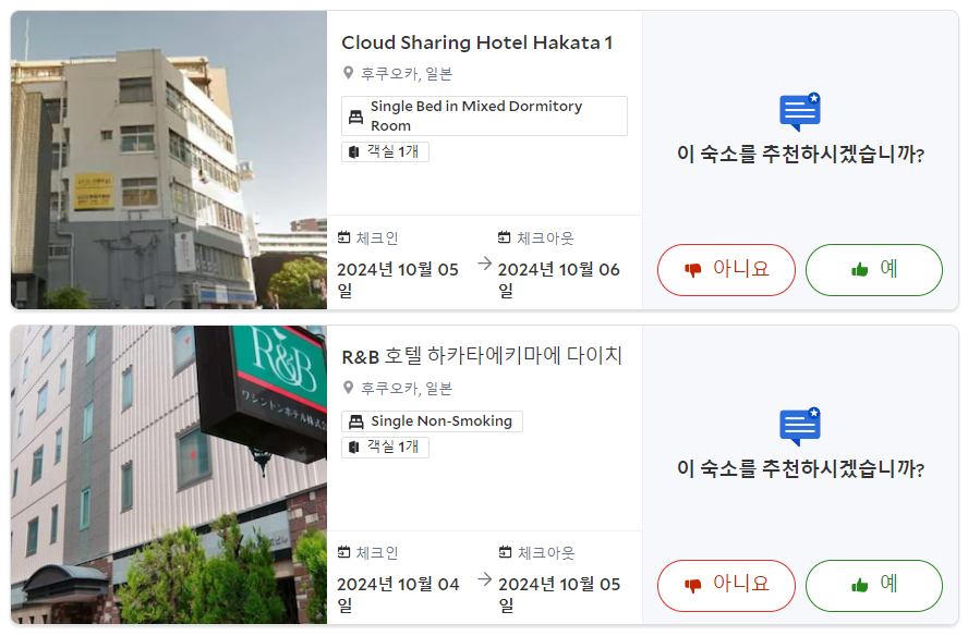 그나마 운좋게 원래 가격에 큰 차이가 없는 호텔 방을 구했는데, 그 중에 첫날 호텔이 마음에 들었다. 하카타역 24번 출구에서 5분 이내의 거리였다.