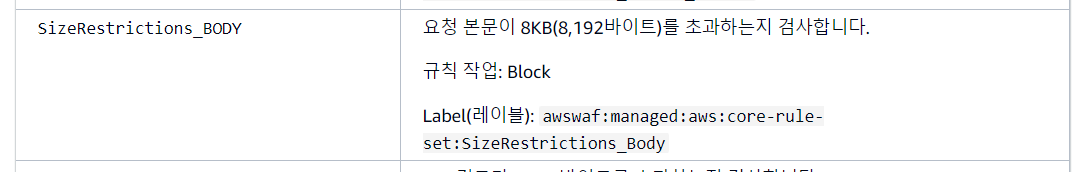 AWSManagedRulesCommonRuleSet의 SizeRestrictions_BODY 룰의 제한을 받았다.
