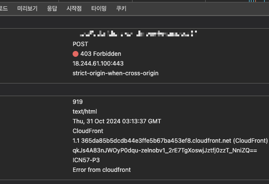 문제는 이 로그에 403 에러가 발생했다는 이력만 남아있고 원인이 남아있지 않았다.