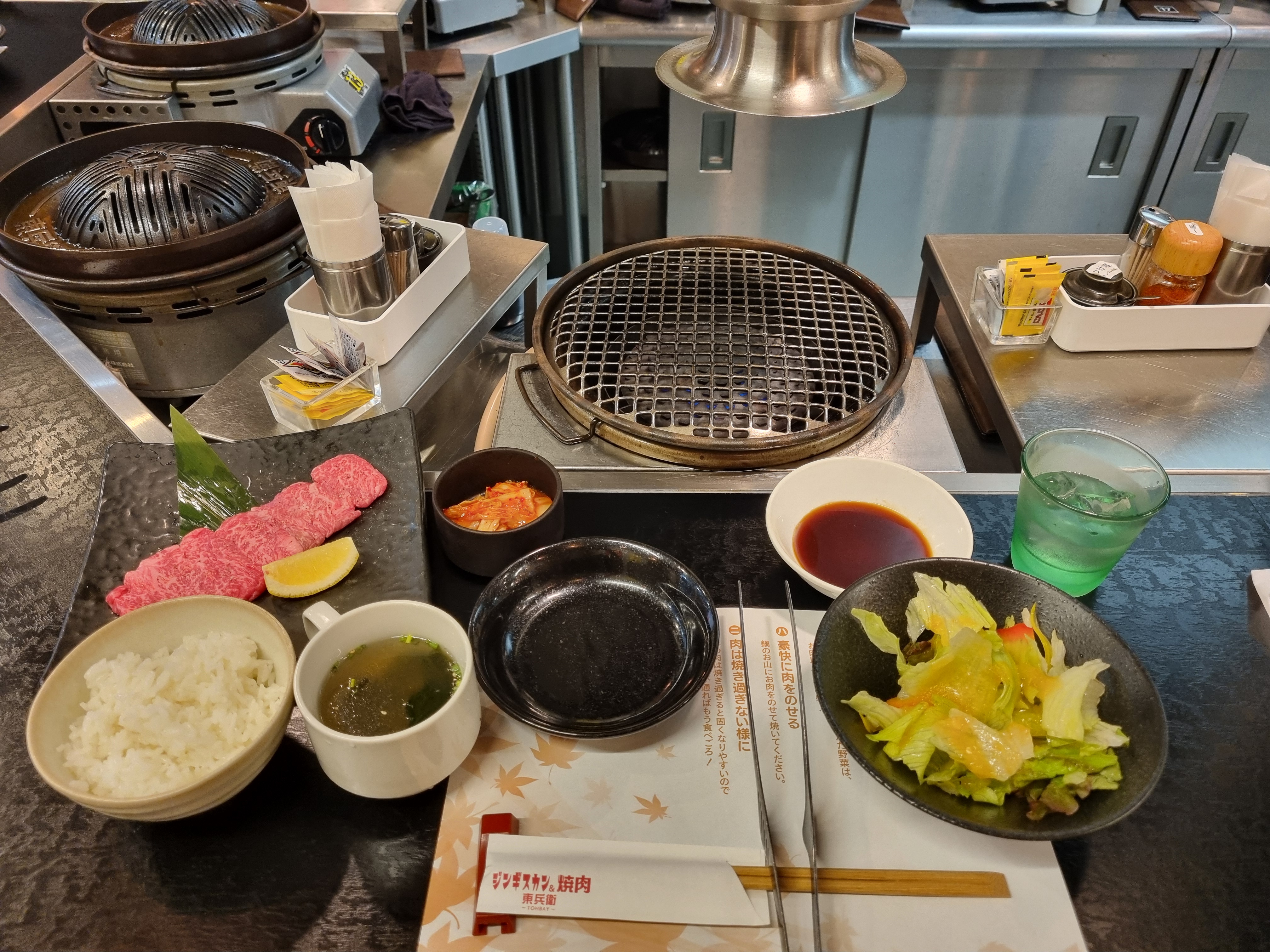 신발 문제가 해결되니 허기가 돌았다. 뭘 먹지 고민하다가 마지막날까지 야키니쿠를 안먹어본 것 같아서, 고기집을 찾아다녔다. 상점가 중간 지점에 야키니쿠 집이 있었는데, 아직 런치 시간대라 야키니쿠 런치 세트를 먹을 수 있었다.