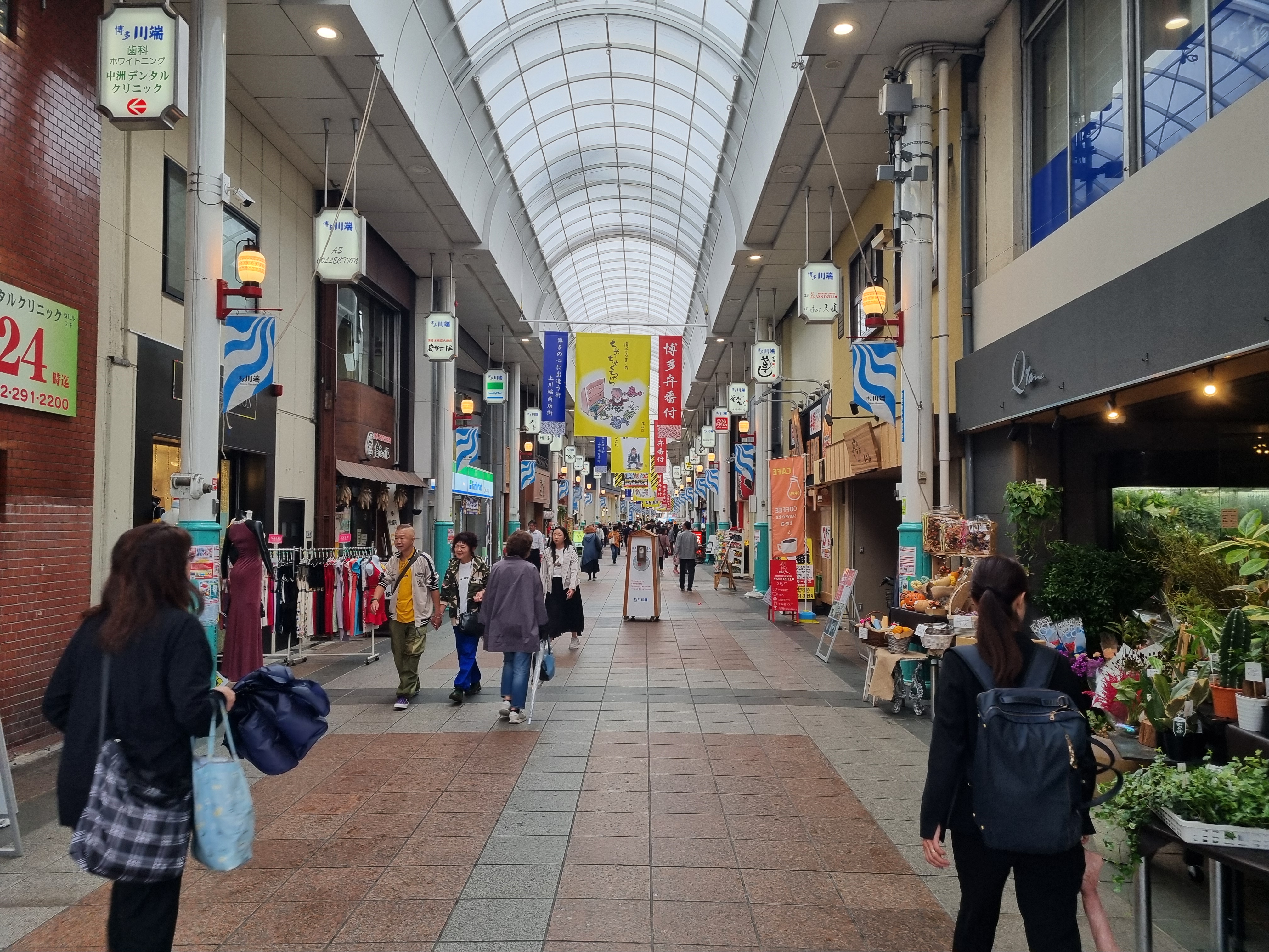 돌아오는 길에 전날 나카스카와바타 역 근처 상점가를 둘러봤다.