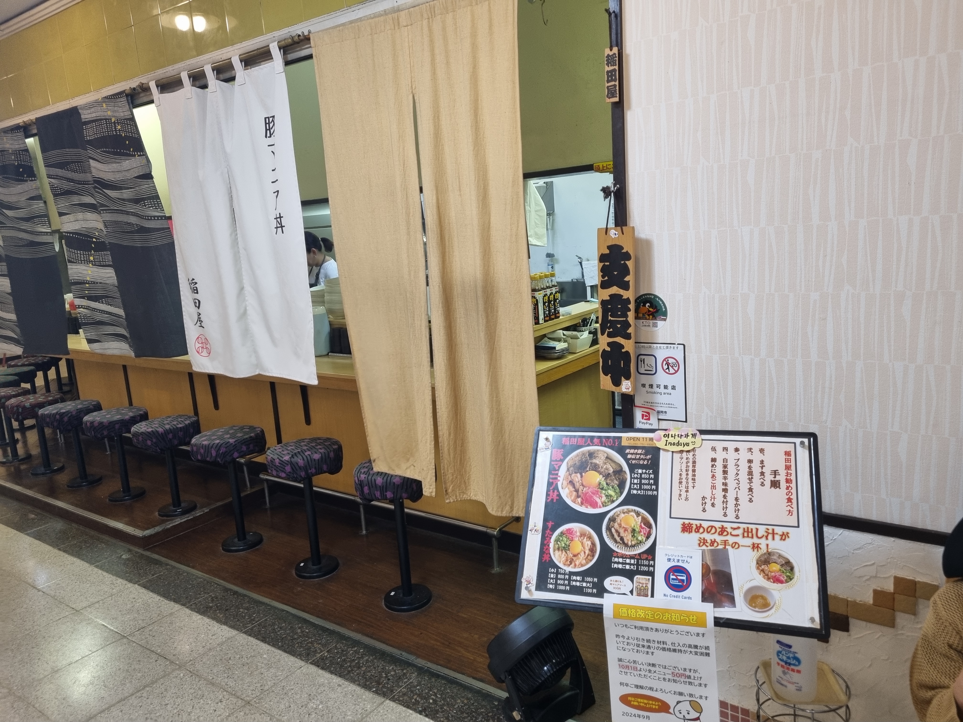 건물 지하에 완전 오픈된 매장이었다. 내가 도착했을 때는 먼저 5명정도 줄 서 있었고, 사진처럼 조리하는 곳을 기준으로 둥글게 20~30석 정도 자리가 마련되어 있었다. 나는 고기 많이 + 밥을 중간인가 조금인가 사이즈로 시켰는데 밥을 많이 안시킨걸 정말 후회했다. 여기서 먹은 부타동이 내가 먹었던 일본 음식 중 제일 맛있었다. 불맛 나는 돼지고기와 특제 양념이 최고였다. 특제 양념은 따로 구매도 가능했다.