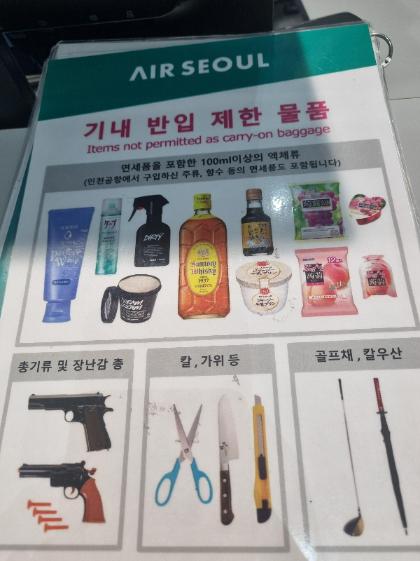 에어 서울은 파우치형 곤약젤리도 기내 수하물로는 안된다고 한다. 이게 에어 서울만 안되는건지는 명확하지 않지만 일단 에어 서울은 안된다.