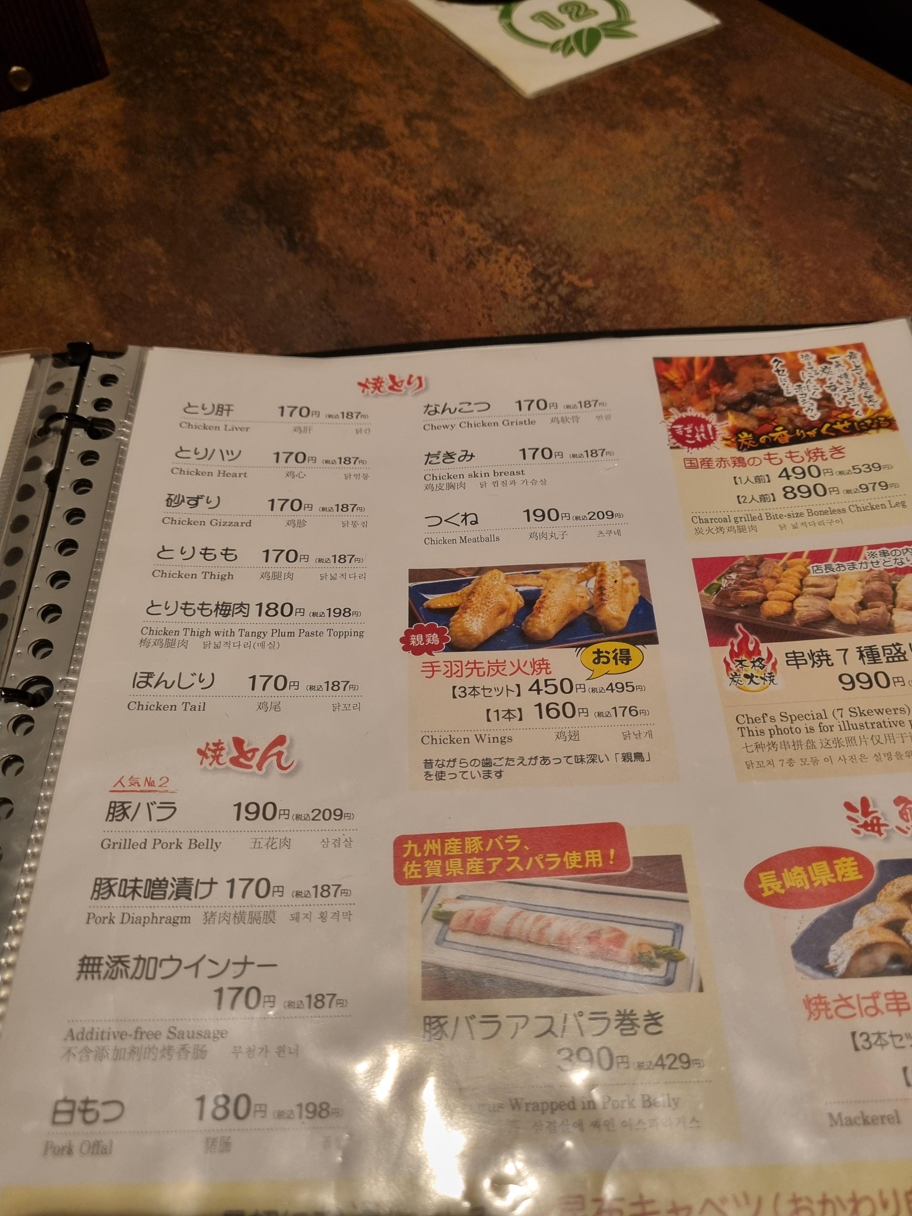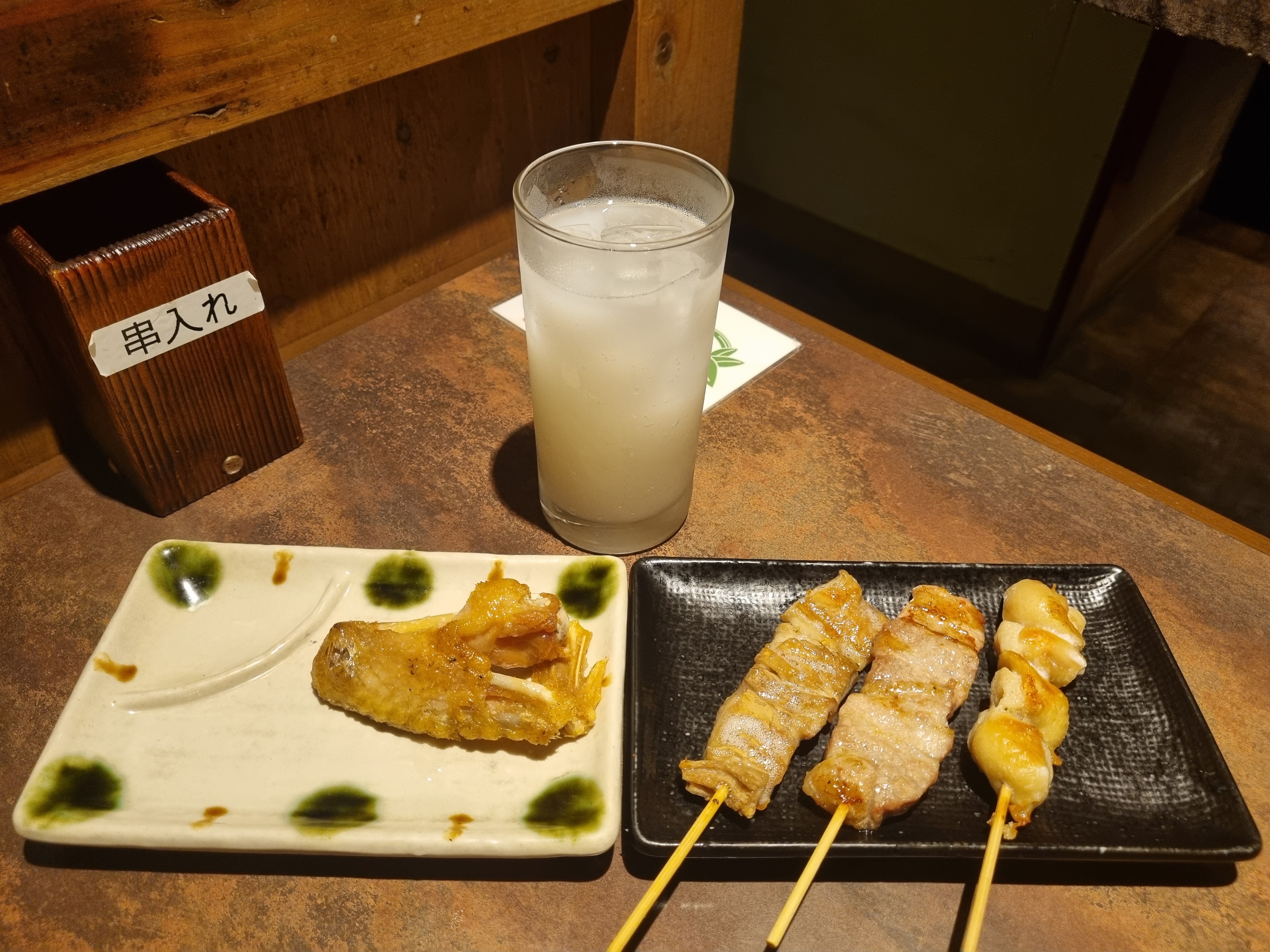 이대로 들어가긴 아쉬워서 야키토리 집을 가서 가볍게 혼술을 하고 나왔다. 저번에 먹었던 레몬 사와는 단맛이 아쉬워서 칼피스 사와를 시켰는데 딱 내가 원하는 달달한 술맛이어서 맛있게 먹었다. 야키토리들은 대부분 천엔대라 더 시키고 싶었는데, 라스트오더가 얼마 안남았던 시간대라 정말 가볍게 먹고 나왔다.