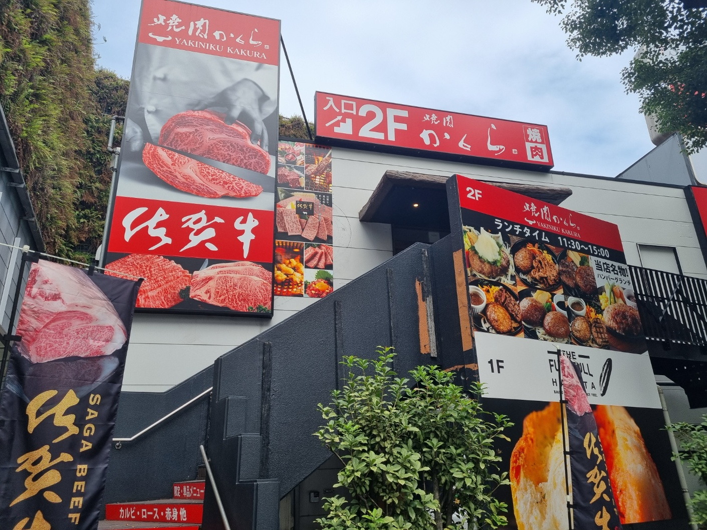 헬스장을 가다가 정말 우연히 찾은 야키니쿠 카쿠라라는 야키니쿠 집이다. 1층에는 FullFull이라는 빵집이 있는데, 이 야키니쿠집보다 빵집이 더 유명한 것 같은게.. 왔다갔다할 때마다 웨이팅이 있었고 내부가 꽉차있었다. 배가 너무 고픈 상태로 헬스장을 가다가 적당한 가격에 햄버그 스테이크 정식을 판다고해서 가봤다.
