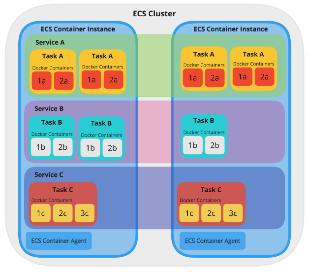 테스크는 ECS 클러스터 안에서 실행되고, 테스크 정의를 기반으로 하나 이상의 컨테이너 그룹을 관리한다.
