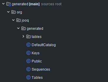 generateJooq를 실행시키면 실제 DB에 접근해서 테이블 정보를 가져오고, 자동으로 테이블에 매핑된 객체를 생성해준다.