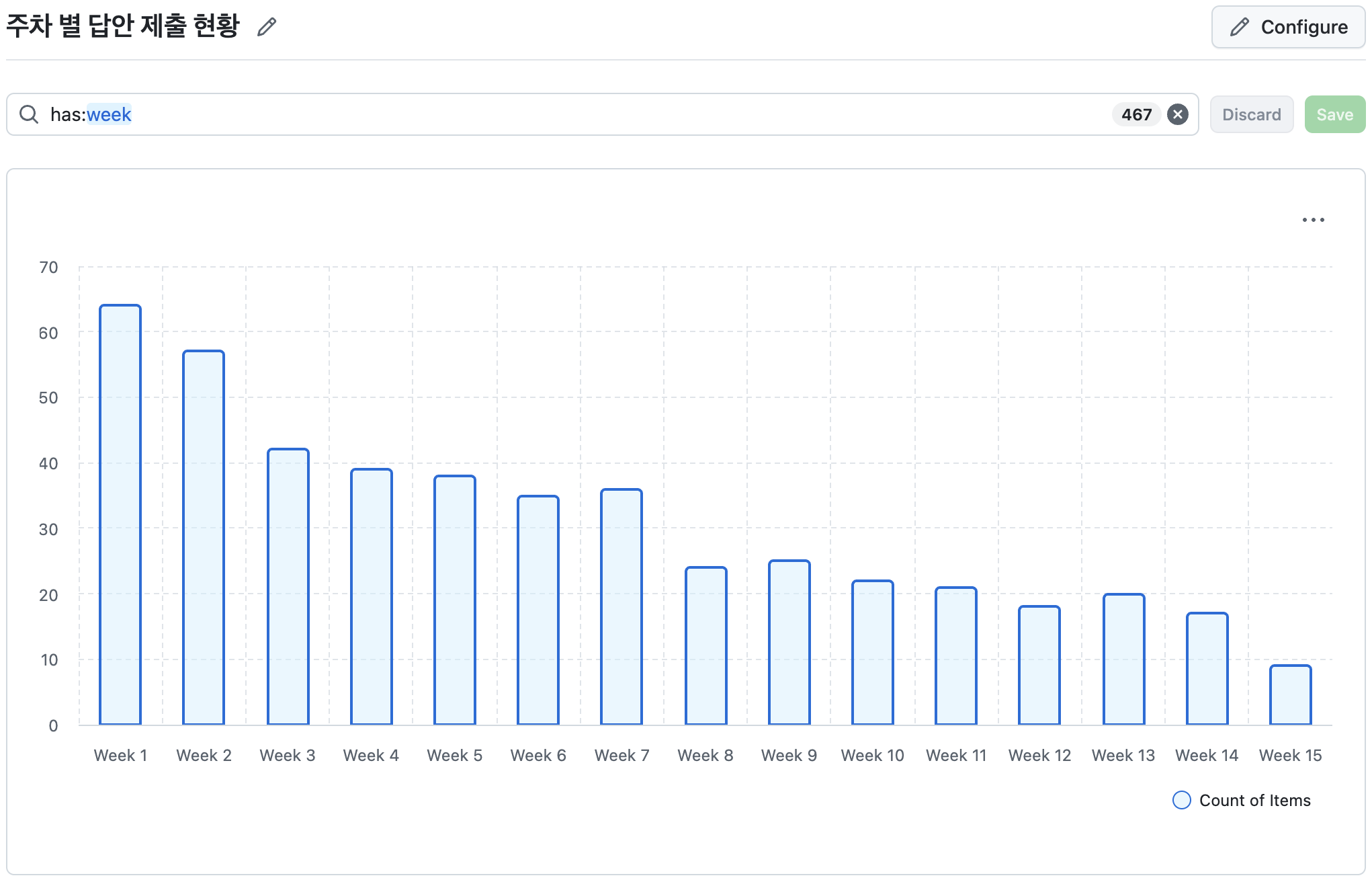 뒤로 갈수록 5문제를 다푸는 사람은 줄어들었고, 특히 마지막 주에는 PR 자체가 거의 안올라왔다.