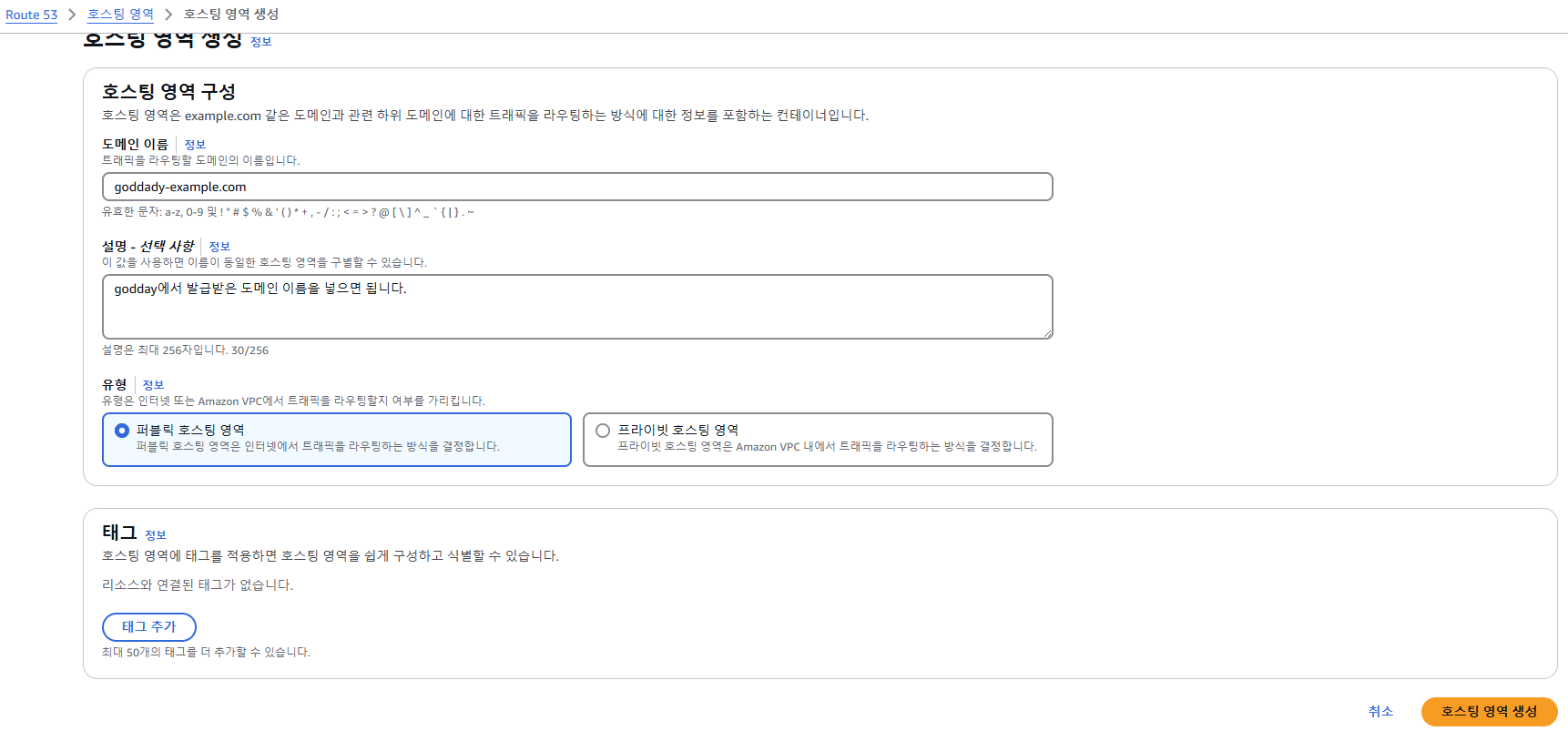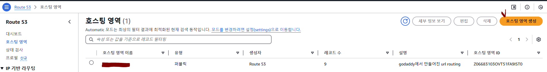Route 53 > 호스팅 영역 생성으로 이동