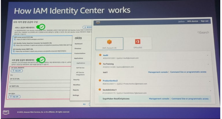 IAM Identity Center 와 IAM federation과의 차이는 계정마다 독립적, 그래서 일일히 변경해줘야하는 번거로움