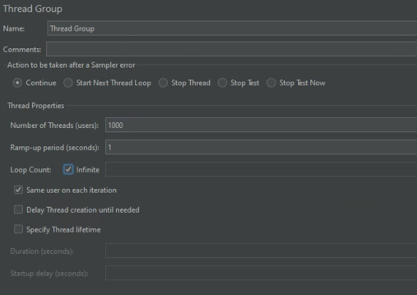 - Thread Group에 설정들이 있는데 내가 설정한 것들만 정리