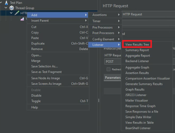 - HTTP Request 우클릭 > Add > Listener > View Results Tree